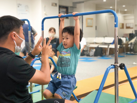 2~4歳児クラス(定員5名)と5~6歳児(定員5名)の少人数制の運動教室で、リハビリの専門家である理学療法士やスポーツトレーナーが講師を務めます。