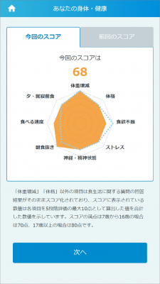 栄養状態からの身体・健康の評価結果の画面イメージ