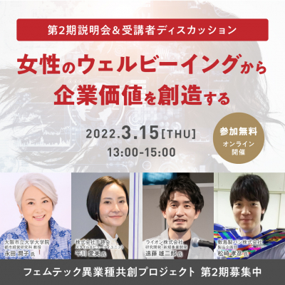 現在、第2期説明会&受講者ディスカッションへのお申し込みを受け付けております。参加は無料ですので、ウェルビーイングをテーマにフェムテック理解を深めたい、異業種間での交流をはかりフェムテック課題に取り組みたいという方はぜひご参加ください。