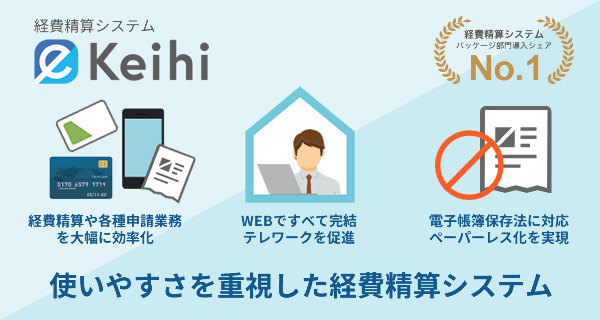 「eKeihi」は、社内で発生する様々な経費(交通費、出張費、会議費、交際費など)の申請~承認~支払処理の電子化、一元管理を実現します。