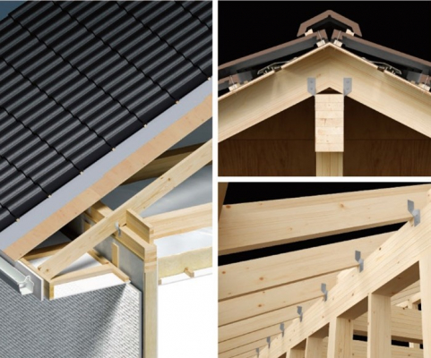 垂木と桁の固定は標準仕様で基準風速46m/sをクリアする仕様としてますが、台風対策パッケージではその同等強度の金物を2重に設置し、標準仕様の2倍相当の強度を確保。