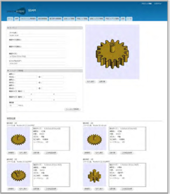 そこで、東レエンジニアリングは、蓄積された3D CADデータ群から、類似した形状を検索して3Dモデルを表示し、属性情報などを確認することが出来る、類似形状検索システム「SS4M」の導入を検討されました。「SS4M」は、属性値の検索だけではなく、形状の特徴量で検索を行え、部品流用や流用設計の展開ができるようになることから、QCDの向上に繋がると評価いただき、類似形状検索システム「SS4M」の導入を決定いただきました。