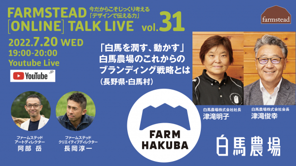 このたび2022年7月20日水曜日19:00より「デザインで伝える力」をテーマに、対談特別トークセッション「ファームステッド[オンライン]トークライブVol.31」をオンライン開催いたします。