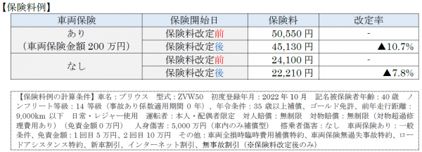 (注2)今般の保険料改定にあたって、「無事故割引」を導入しています。したがって、前契約で事故が発生していないお客様は概ね保険料が引下げとなります。