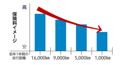前年に走行した距離に応じた区分(注4)で保険料を算出します。前年に走行した距離が少ないほど、保険料は安くなります。