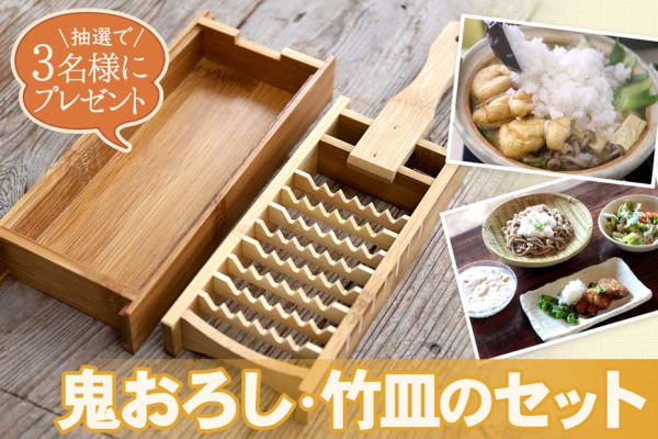 特別プレゼント企画♪竹製大根おろし(鬼おろし)と鬼おろし竹皿のセットを3名様にプレゼント