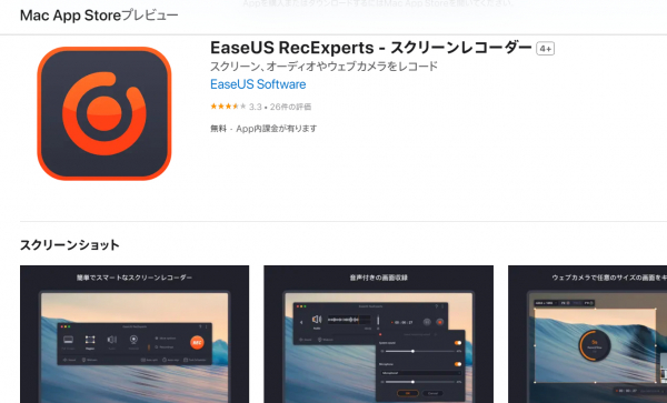 Mac App Storeのダウンロードリンク: https://apps.apple.com/jp/app/screen-recorder-easeus/id1581903884