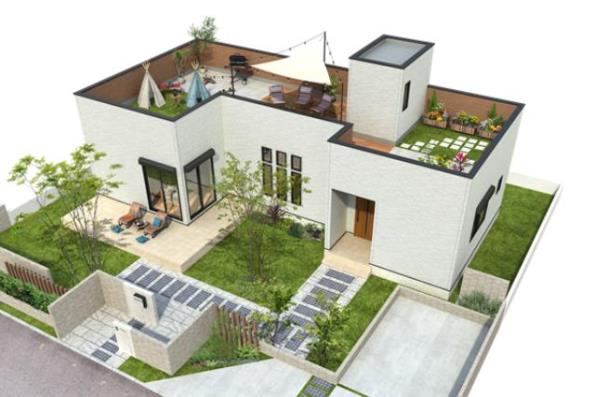 「オールルーフスタイル」は、カースペースやエントランスアプローチで庭が確保できない敷地でも、屋上にプライベートフィールドを設けることができます。接道状況によっては、専用ドックランや小さな子供を安心して遊べるスペースとして活用でき、広々した空間で家族やペットと居心地の良い屋上ライフが満喫できます。