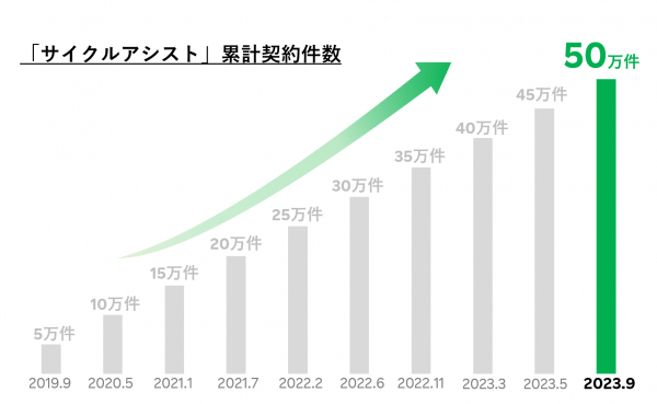 自転車事故に対する意識が社会全体で高まっている中で、楽天損保の「サイクルアシスト」は、2023年4月から6月における新規契約件数が前年同期比42%増を記録しました。9月1日には契約件数は累計50万件を突破し、順調に推移しています。