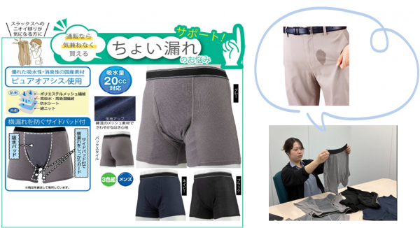 尿モレは、女性特有の悩みとして話題になることが多い中、男性にも尿モレに悩む方が多く存在します。そのような男性の悩みに、当社の女性開発者が挑戦した開発ストーリーとあわせてご紹介します。