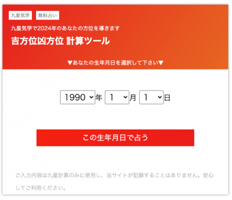 2023年10月17日、占い専門メディアのzired(URL:https://zired.net 運営会社:株式会社リーチゼム)は、九星気学『2024年の吉方位凶方位 無料計算ツール』をWebアプリ形式で正式リリースしました。利用者は自身の生年月日を選択するだけで、一白水星~九紫火星などの九星への分類が瞬時に行われ、自身の2024年の吉方位および凶方位を知ることができます。