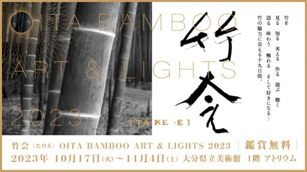 公益財団法人大分県芸術文化スポーツ振興財団が運営する大分県立美術館では、10月17日から11月4日まで、「OITABAMBOO ART &LIGHTS 2023『竹会』」を開催します。公開制作期間に制作した作品を10月27日からライトアップして展示します。つきましては、下記のとおり点灯式を開催しますので、ご取材くださいますようお願い申し上げます。