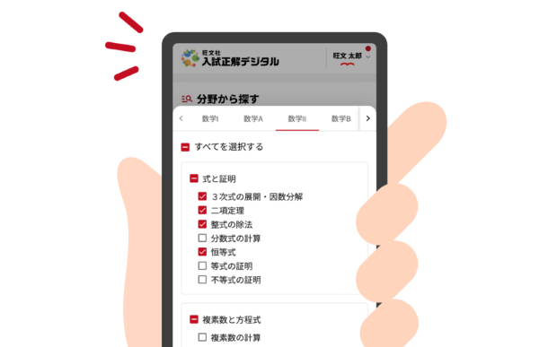 さらに、複数年度の問題から特定の分野を選んで学習できる「分野検索」機能や、大学入学共通テスト対策に役立つ予想問題セット(入試正解デジタルプレミアム限定)を搭載し、入試直前期まで効果的に利用できるようアップデートしました。