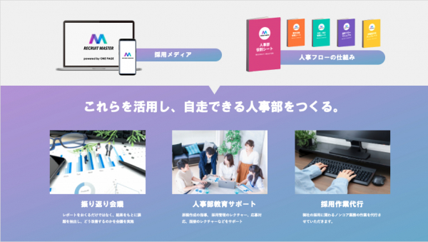 そのために採用コンサルティングをおこない、最終的には、外部に頼らず自社で採用の課題解決ができるように支援するのが「リクルートマスター」です。