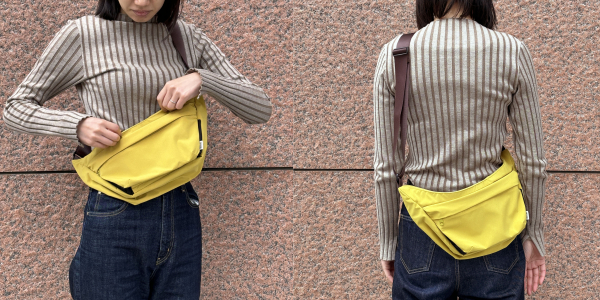従来の「ショルダーバッグ」よりも小さい分だけフィット感がアップしているため、バッグをつけてランニングや、旅先でのアクティビティなども思いのまま。小柄な女性も持ちやすく、男性はボディバッグ感覚で使うのもおすすめです。