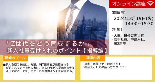 2024/03/19(火) 先輩・OJT指導者のためのビジネスマナー【ビジネスマナー指導編】