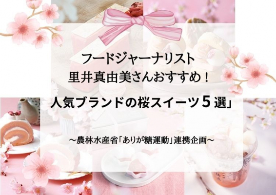 スイーツ/菓子業界を盛り上げるため、創業300年の老舗から近年オープンの店舗まで「フードジャーナリスト里井真由美さんおすすめ!人気ブランドの桜スイーツ5選」を紹介し、消費者へいいモノを届けようと創意工夫し、頑張っている生産者を応援します。