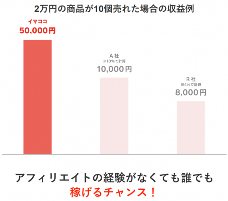 さらに、この料率は日本最大級の報酬率となり、アフィリエイターの皆様は、自身のSNSやウェブサイトを活用したり、クチコミで友人知人へ共有するなど、あらゆる手段でイマココ(imacoco)の商品を宣伝し、売上に応じた報酬を得ることができます。