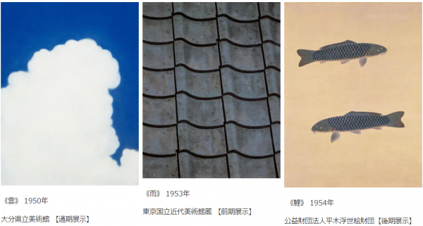 ・重要文化財《漣》をはじめ《鯉》(皇居三の丸尚蔵館)、《花菖蒲》(京都国立近代美術館蔵)、《雨》(東京国立近代美術館蔵)など代表作が集結