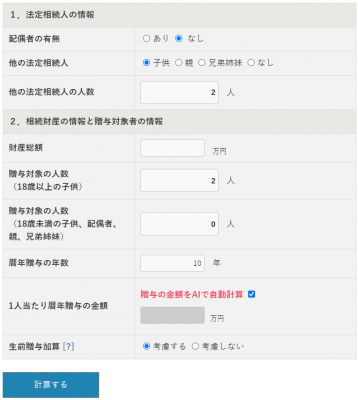 下記の情報を入力するだけで、最適な贈与金額をAIが瞬時に計算します。