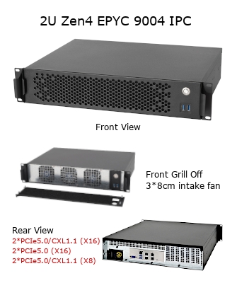 (2U ラックマウント インダストリアルPC, LGA-6096 Zen4 EPYC 9004 CPU, AMD SoC, 2*PCIe5.0/CXL1.1(X16)LPバス, 2*PCIe5.0(X16)LPバス, 2*PCIe5.0/CXL1.1(X8)LPバス, 2*M.2 NVMe SSD, 4*SATA/NVMeデバイス, 2*10GbE+2*GbE LAN, 850W 80Plus プラチナ規格 Flex ATX電源)