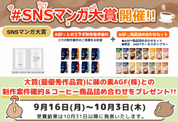 賞品:大賞(最優秀作品賞)に味の素AGF(株)との制作案件確約&コーヒー商品詰め合わせをプレゼント