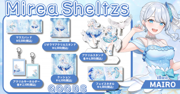 イラストレーター『MAIRO』さん書きおろしのイラストを使用したマウスパッドやアクリルスタンドなど、計8種のオリジナルグッズは、2024年10月19日(土)までの期間限定で販売しております。