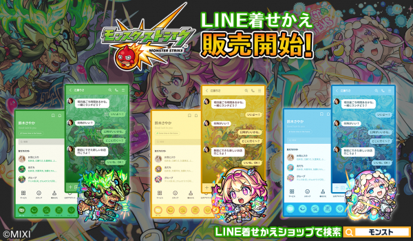 2019年10月10日(木)に、全25点が一斉配信されたLINE着せかえシリーズ第1弾は、LINE着せかえランキング1位を獲得した『ルシファー』を筆頭に、多数のモンストキャラがランキングTOP20圏内にランクインしました。今回の「モンスターストライク」LINE着せかえシリーズ第61弾は、7月2日(火)にて新登場『不思議系きのこ占い師 マムル』、8月13日(火)にて真獣神化が解禁された『真獲神 ハンターキング』、9月1日(日) にて新登場『輝きのサニ・エージェント ルミナス』がLINE着せかえとなって登場です!