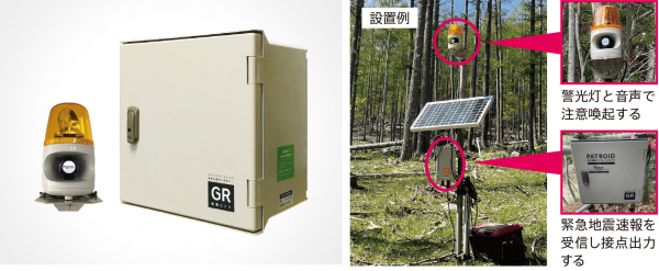 ソーラー電源により場所を選ばず複数台の設置ができることから、スマートフォン不携帯時にも情報を覚知でき、例えば建設現場ではクレーンの吊り荷を安全な場所に下ろす、現場作業員を不安定な足場から退避させる、といった安全確保を通じて被害軽減を図ることが可能になります。