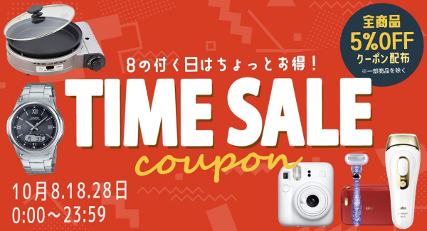1. ホームショッピング公式ショップ「5%OFFクーポンセール(一部セール除外品あり)」2024年10月28日(月) 0:00~23:59開催予定