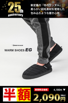 創業以来大変お世話になっているお客様のおかげだと従業員一同深く感謝を申し上げます。BODYMAKERは1999年の創業当初よりトレーニング・格闘技用品の総合メーカーとして多くの格闘家・トレーニーの方にご愛顧いただいております。今年も創業25周年を記念し、お客様への感謝の想いを込めてスペシャルなセール「大創業祭」を直販サイト・直営店舗とも同時開催いたします。目玉商品を一部紹介すると シーズン到来ウィンターブーツ¥8,000→¥3,990、ウォームシューズ EG¥4,180→¥2,090、人気のあったかインナー BM・WARMGEARロングスリーブ¥3,300→¥1,650など、うれしい半額商品多数。他にも期間中、新作ウェアやトレーニング・格闘用品も期間限定スペシャルプライスで販売致します。ぜひこの機会にご利用ください。