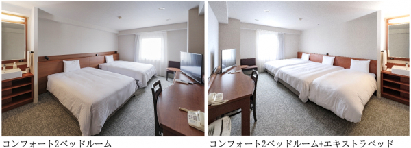 全客室と廊下の天井、壁面のクロス、カーペットの張り替えを実施。全室ご自宅のように靴を脱いでくつろぐことができ、リラックスして滞在できます。また小さなお子様連れでも安心してお過ごしいただけます。客室は、カーテンやいす・スツール、洗面台まわりをリニューアル。洗面ボウルのサイズを大きいものに変更し使いやすくなりました。テレビは、スマートテレビを導入し、「Hulu」や「YouTube」など多くの動画配信サービスをお楽しみいただけます。※一部動画配信サービスはアカウント登録が必要となります。さらに、4~6名様の宿泊も可能なフォースルームを新設。多彩な部屋タイプを設けることで、お客様のシーンに合わせ、様々なニーズにお応えできるようになりました。1階の朝食会場は、お客様の利用増加に伴い、座席を55席から72席に増やし、利便性向上に取り組んでおります。