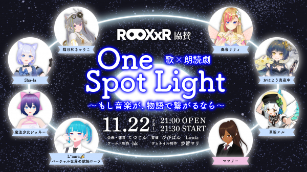 「One Spot Light」はメタバースで活動する7人のシンガーたちが集まり、「音楽」と「朗読」を融合させた、全く新しい表現を切り拓く試みです。