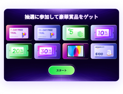 さらに、今回のブラックフライデーセールでは、特別な抽選キャンペーンも同時開催されます!HitPaw Edimakorを購入した方を対象に、豪華賞品が当たるチャンスを提供いたします。