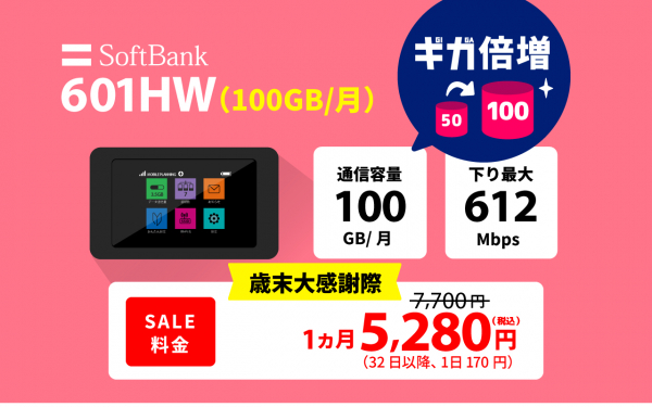 ・SoftBank 601/603HW(通常50GB/月→100GB/月)※1