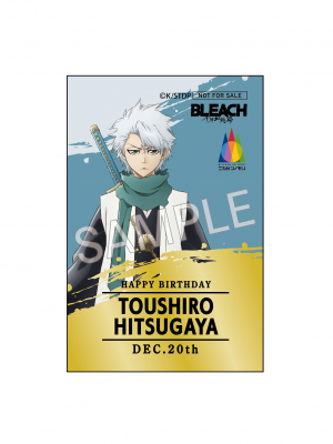 イベント開催期間中に誕生日を迎えるキャラクターをお祝いする限定イベント。第3弾は12月20日に誕生日を迎える、護廷十三隊十番隊隊長 日番谷冬獅郎のお祝いに、期間中に来場された方には、バースデーイベント限定ノベルティをプレゼントいたします。