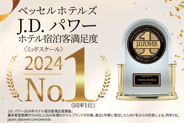 「あなたと家族と街を愛する。」をコンセプトに、全国でホテル事業を展開する株式会社ベッセルホテル開発(本社:広島県福山市南本庄三丁目4番27号、代表取締役社長:瀬尾 吉郎(せお よしろう)、以下ベッセルホテルズ)が運営するベッセルホテルズ(「ベッセルホテルカンパーナ」「ベッセルホテル」「ベッセルイン」「REF by VESSEL HOTELS」の4ブランドが評価対象)は、2024年11月21日(木)、株式会社J.D. パワー ジャパン(本社:東京都港区、代表取締役社長:山本 浩二(やまもと こうじ)、以下J.D. パワー)が発表した「J.D. パワー2024年ホテル宿泊客満足度調査」の<ミッドスケールホテル部門>において、顧客満足度第1位(同率1位)を受賞しました。特に「料金」において高い評価をいただきました。これは、コストパフォーマンスの良さが今回の結果につながったものととらえております。ベッセルホテルズが第1位を受賞するのは、今回で3度目となります。