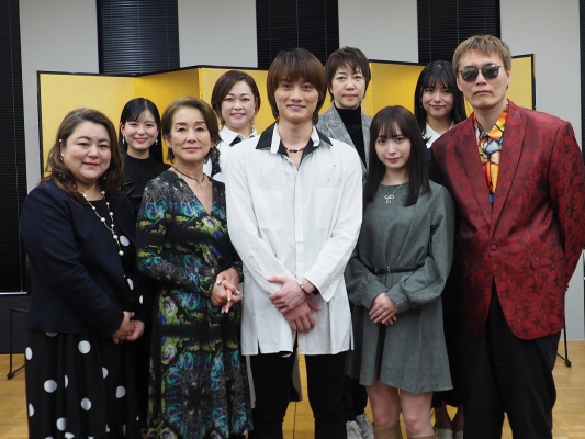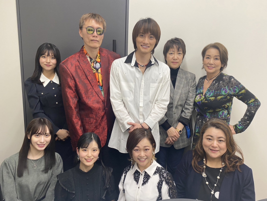その後のフォトセッションは再び和やかな雰囲気に戻り、登壇者の他、信者役で撮影に参加した弊社所属の夏風巫和人、期君路参の(石井ひとみ、齊藤義久、伊東和哉、嶋津美紀)もフォトセッションに参加しました。