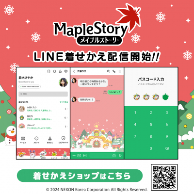 「メイプルストーリー(MapleStory)」LINE着せかえ第4弾がインクルーズより配信開始!第4弾はメイプルストーリーのモンスターたちメインの冬デザインとなっております。