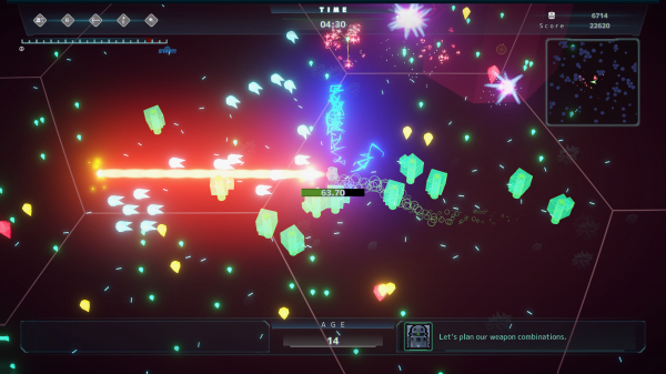 ウイルスハンターは、人間の体内を模した空間で自機を操作して、侵入してくるウイルスなどの外敵を駆除していくアクションゲームで、簡単な操作と、派手なエフェクト、武器の組み合わせを工夫する戦略性が特徴です。