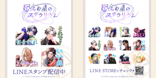 『廻らぬ星のステラリウム』初となるLINEスタンプ1点とLINE着せかえ全4点がインクルーズより一斉に配信開始!LINEスタンプは使いやすいスタンプをご用意いたしました。LINE着せかえは「シュルヴァート」、「ベリルウッド」、「ギザムルーク」、「オウラン」の国別のデザインとなっております。是非、LINEスタンプとLINE着せかえで『廻らぬ星のステラリウム』の世界観を更に深くお楽しみください!
