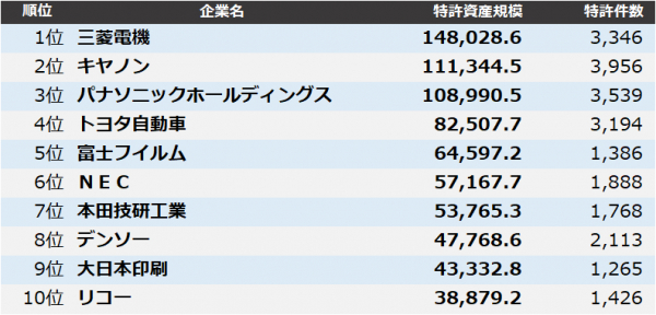 【全業種】特許資産規模ランキング2024 トップ3は三菱電機、キヤノン、パナソニックHD