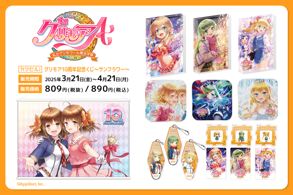 人気ゲーム「グリモアA~私立グリモワール魔法学園~」の10周年を記念した豪華グッズが、フィジカルグッズのオンラインくじ「カワセルくじ」に再び登場!