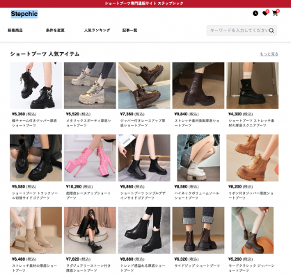 ショートブーツの専門通販サイト「ステップシック」は、ショートブーツに特化し、100商品以上のアイテムを取り揃えています。