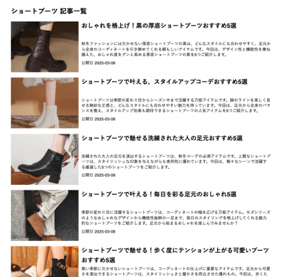 特徴2:ショートブーツの選び方が楽しくなるような特集豊富なコンテンツ!