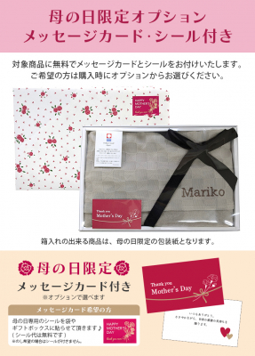 母の日のご注文限定で、メッセージカード&母の日専用シールをセットにしてお届けいたします。感謝の気持ちがより伝わる特別仕様です。