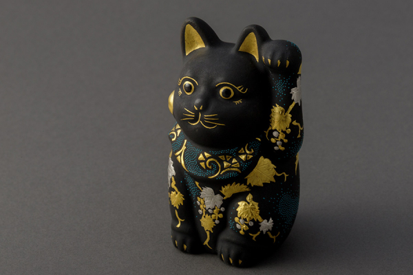 国内外のお客様にも人気の招き猫。器だけでなく、さまざまな置物にも描かれています。受け継がれる盛金青粒画風、優雅で卓越した美しい錦玉の作品をご堪能ください。