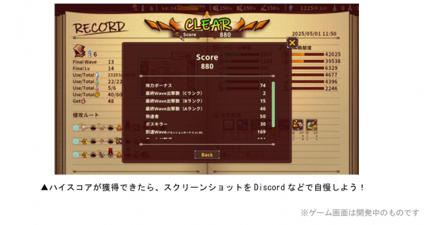 今回のアップデートで、前回好評だったチャレンジ「エッグペイント祭」で導入されたスコアシステムが、通常モードに常設機能として実装されます。本システムでは、「ボスを討伐」「ネームドエネミーを討伐」などの条件を満たすことでスコアが加算され、アセンションが高ければ高いほどスコアも上がります。『ShapeHero Factory』をやり込み尽くしたプレイヤーに向けた、新たな挑戦の場としてお楽しみください。
