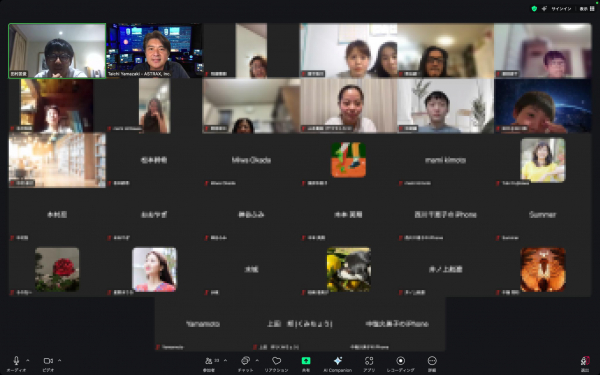 田村先生の呼びかけに40人程度の参加者が集まりました。講演の第3回目として、オンライン宇宙講演「新たな天動説から地動説へ(本当に宇宙は無重力なのか?)」の内容で約1時間半講演(質疑応答含む)を行いました。