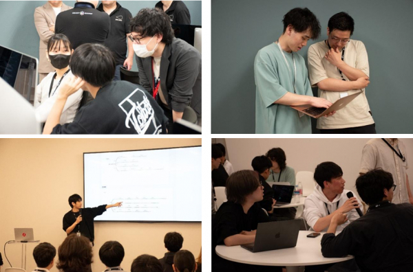 後半日程ではプレイヤーの開発と並行しながら発表資料の作成を行ってもらい、最終日に各チームがどのような工夫をしてプレイヤーを開発したかの成果発表会を行いました。開発場面ではプログラムの実装と検証に没頭する学生たちの姿が印象的でした。また、成果発表会は学生同士の交流やフィードバックの場となり、成長と刺激の時間となりました。